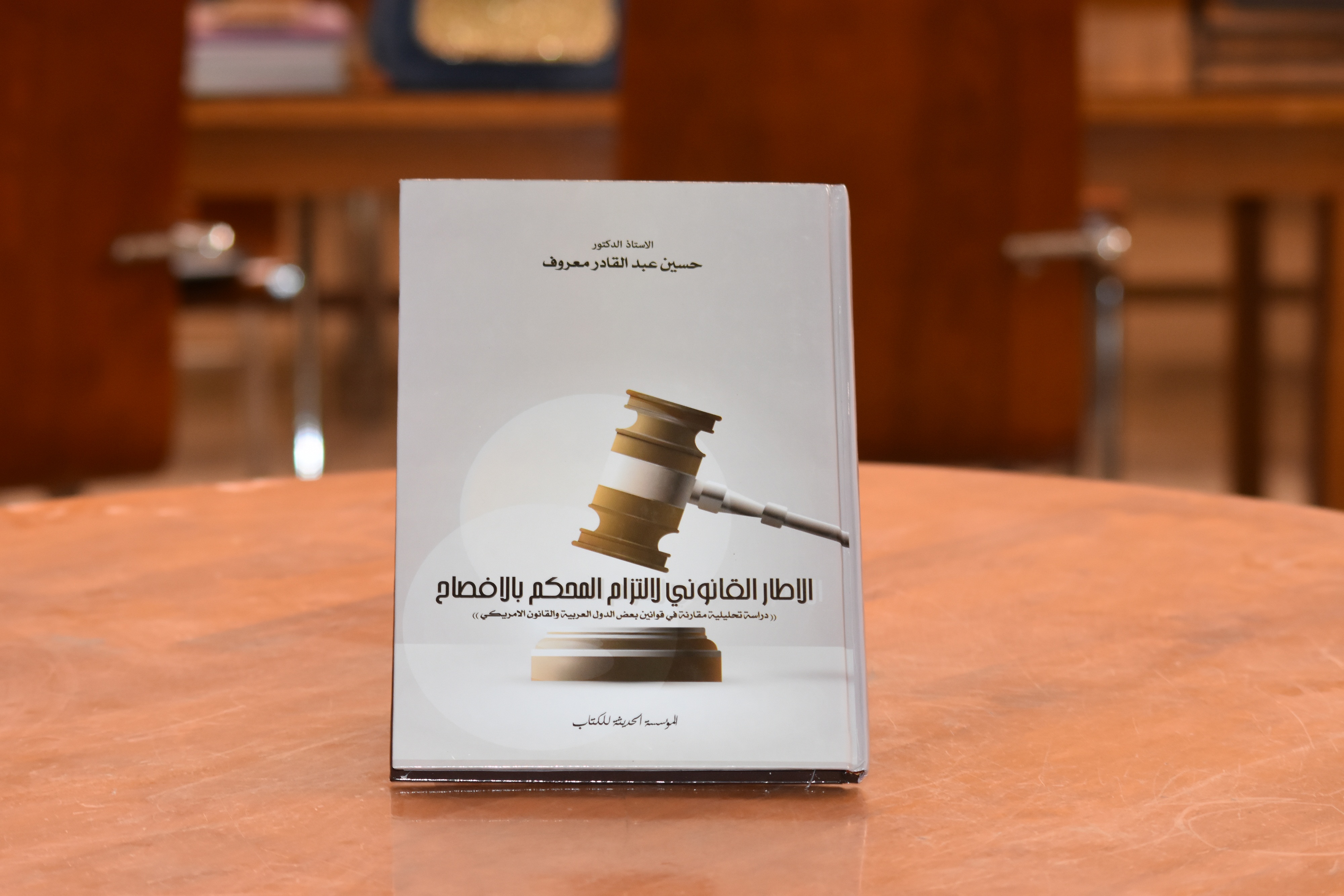 اصدر التدريسي في كلية القانون الدكتور حسين عبد القادر كتابا بعنوان الاطار القانوني للاتزام المحكم بالافصاح