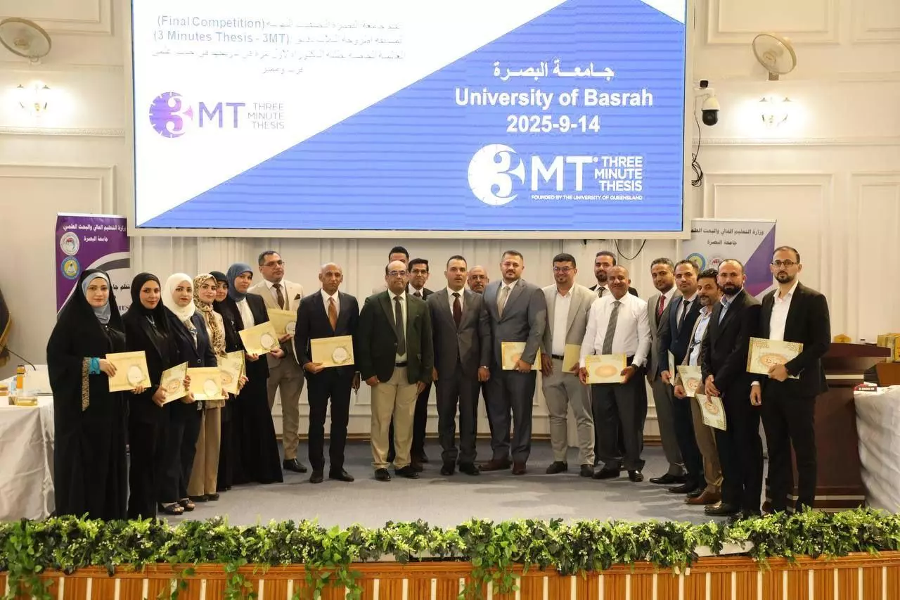 أقامت جامعة البصرة التصفيات النهائية لمسابقة Three Minutes Thesis (3MT) العالمية لطلبة الدكتوراه، بحضور رئيس الجامعة الدكتور مهند جواد الأسدي والمساعد العلمي الدكتور حيدر خزعل، وعدد من السادة العمداء ومدراء الأقسام والتدريسيين.